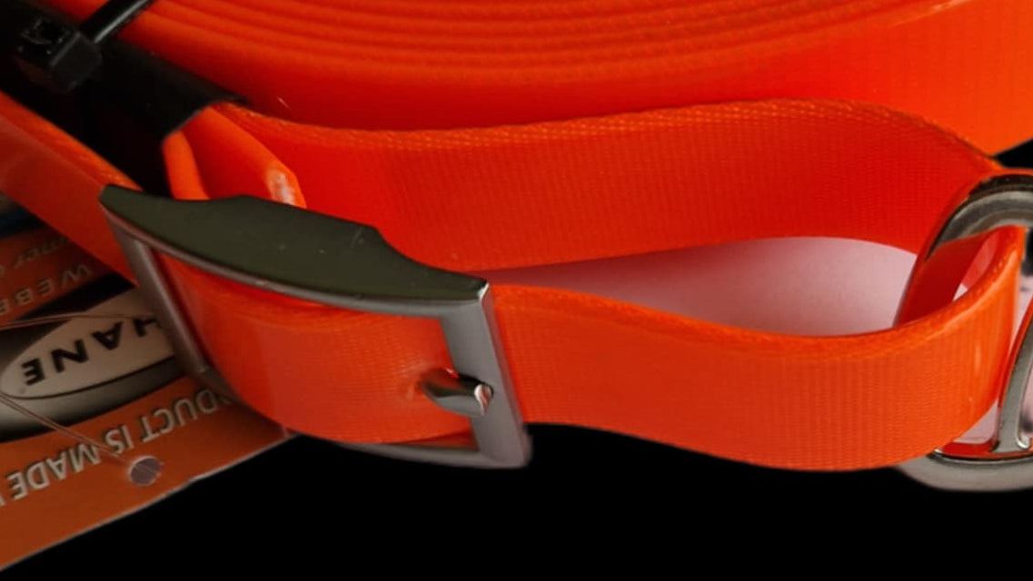- Velg mellom oransje/blå eller oransje/svart line og velg type krok/festeanordning.