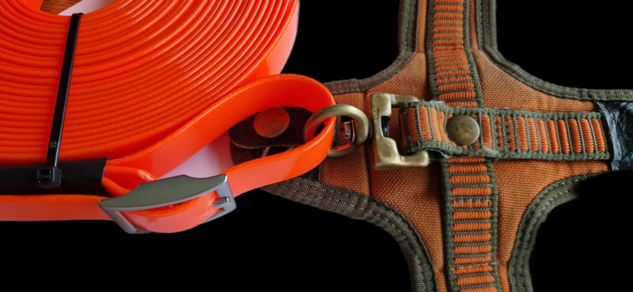 Har du ikkje sporsele/-halsband med svivel på, anbefaler vi å kjøpe line med krok, eller kombinere spenne med krok. Sjå bildene.